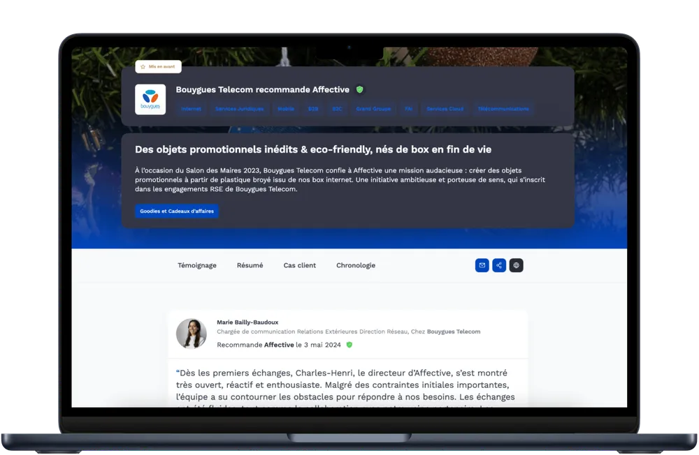 Enrichissez vos avis avec du contenu : réalisations, photos, vidéos... Ou faites appel à notre équipe pour la réalisation de vidéos de témoignages clients, où la rédaction de cas clients sur-mesure.